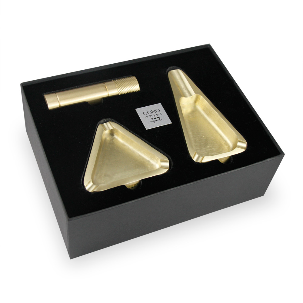 Coho Box Brazen Döküm Pirinç Puroluk & Küllük & Kibritlik Hediye Seti