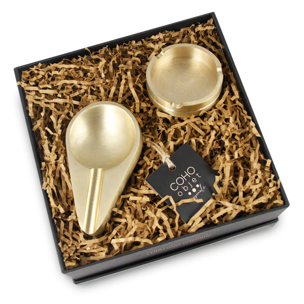 Coho Brazen Hediye Seti – Pirinç İnce Puroluk & Mini Küllük